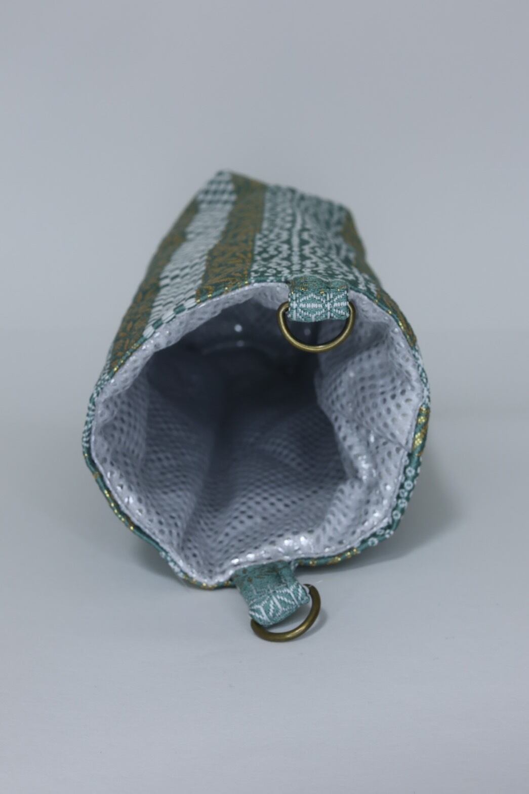 京都を代表する工芸品、西陣織からできたペットボトルカバーです。